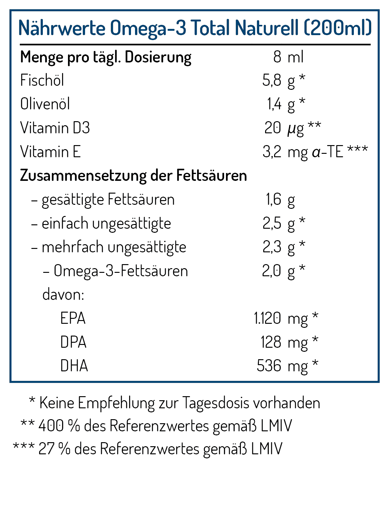 Omega-3 Total Oil contains ⅕ organic cold-pressed olive oil, a natural and powerful antioxidant with a high content of polyphenols. Omega-3 fatty acids are particularly "sensitive" and must therefore be protected both before consumption and in the body. The particularly high polyphenol content of olive oil protects the sensitive omega-3 fatty acids from oxidation. A characteristic of olive oil rich in polyphenols is that you feel a slight scratchy sensation in your throat when you ingest it.